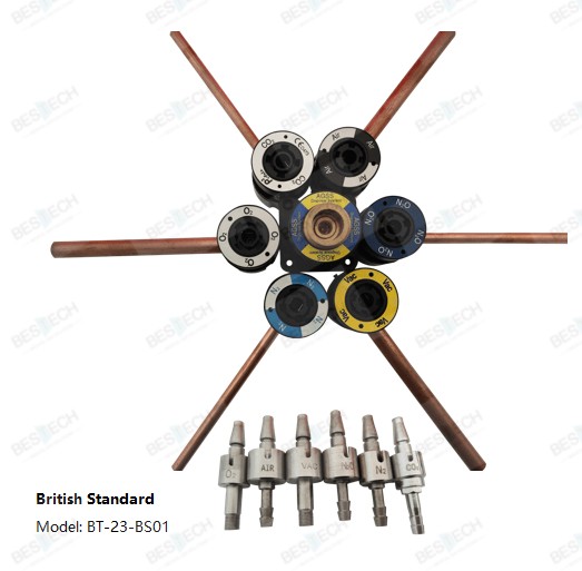 BT-23 series gas outlets have full range of different standard, suitable for installing on Medical Pendant, Bed Head Unit, wall mounting and other possible medical gas applying areas.